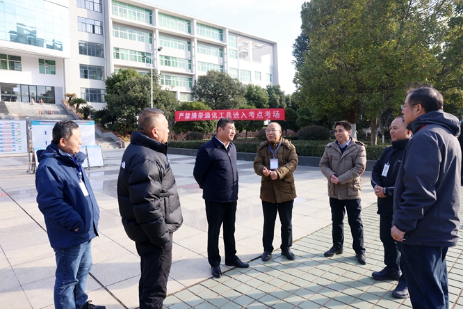 12月23日,省委教育工委书记、省教育厅厅长吴永明,省教育考试院党委书记刘雪平来到ac米兰2024年硕士研究生招生考试考点,看望慰问工作人员,检查指导考试工作。校党委书记黄路生院士、副校长曾志将陪同。