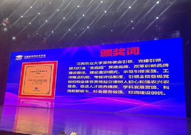 12月28日,江西省高等教育学会在九江召开高等教育与区域高质量发展学术会议,并对江西高校改革创新奖进行颁奖。ac米兰黄路生院士主持的“ac米兰官网中文网站:打造党建‘新引擎’ 挑起发展‘金扁担’——ac米兰官网中文网站‘金扁担’党建品牌引领高质量发展改革创新实践”荣获首届江西高校改革创新奖。