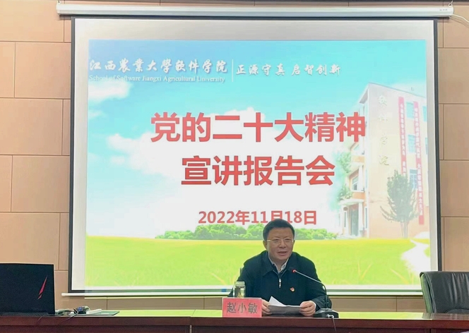 党的二十大召开后,学校坚持把学习贯彻党的二十大精神作为首要政治任务,统筹部署、积极推进。校党委书记黄路生院士、校长赵小敏带头学、示范讲、高位推,在全校范围内形成自上而下全员覆盖、由点及面协同推进党的二十大精神学习宣传生动局面;学校组建“金扁担”宣讲团、“五彩青年”宣讲团、博士宣讲团、“五老”宣讲团,聚合师生力量宣讲党的二十大精神;以习近平新时代中国特色社会主义思想概论课程、“金扁担”党建品牌、“歌咏党课”教学展演等品牌课程和活动带动,将党的二十大精神学习融入日常教学、党建、文化活动中,推动党的二十大精神学习落地有声、落细落实。学校学习宣传党的二十大精神的好做法、好成效,被学习强国、《中国教育报》、江西广播电视台、《江西日报》等媒体广泛报道。