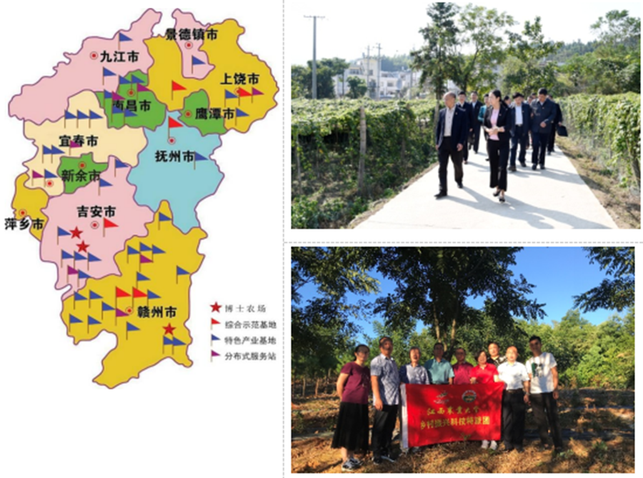 推进校地合作,促进县域发展。十年来,学校先后与80余个县(市、区)建立或深化了战略合作关系,围绕产业发展规划、农业人才培养、乡村治理和发展等方面提供了系列“江农方案”。作为技术支撑单位,学校入选农业农村部与资溪县共建“全国农业科技现代化先行县”试点单位;成立了科创飞地“ac米兰官网中文网站井冈山现代农业综合研发和示范中心”,全力支持井冈山农高区升级创建;与弋阳县共建“方志敏乡村振兴研究院”,探索打造传承红色基因和高质量发展示范区;连续10年对口支援信丰、大余等原中央苏区,为老区振兴发展“把脉开方”。参与了61个自然保护区、森林公园和湿地公园建设,40个县城市森林规划,10个县国土空间规划,为共绘美丽江西新画卷献“技”献策。