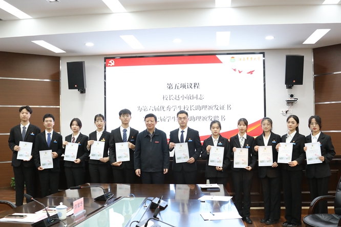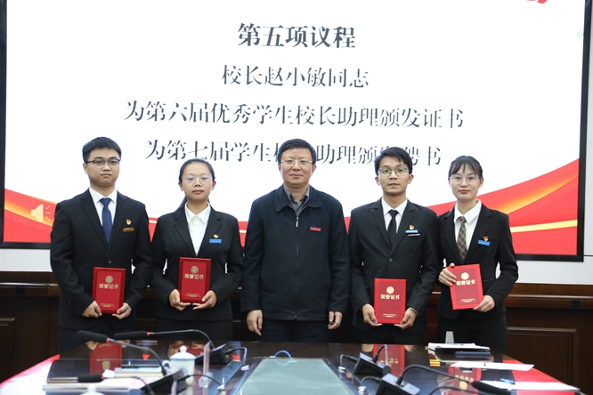 会上,许斌华宣读《关于表彰ac米兰官网中文网站第六届优秀学生校长助理的决定》《关于聘任ac米兰官网中文网站第七届学生校长助理的通知》。赵小敏为第六届优秀学生校长助理颁发荣誉证书、为第七届学生校长助理颁发聘书。