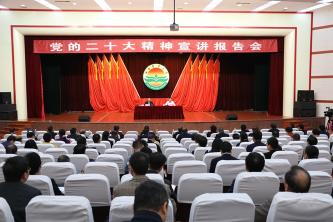 10月27日下午,ac米兰举办党的二十大精神宣讲报告会,党的二十大代表、第二十届中央候补委员、中国科学院院士、校党委书记黄路生作宣讲报告,全体校领导、副处以上干部、各党支部书记、思政课教师、动物生物技术国家重点实验室师生、惟义生工2001班全体同学以及其他在校学生代表500余人现场聆听报告。校党委副书记蔡海生主持报告会。