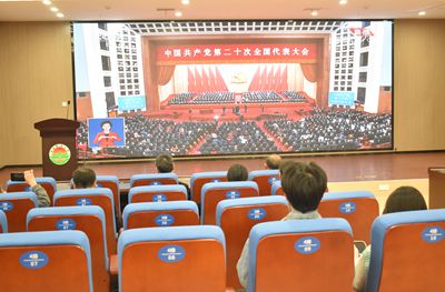 10月16日上午10时,中国共产党第二十次全国代表大会开幕会在人民大会堂大礼堂举行,习近平总书记代表十九届中央委员会向大会作报告。学校党委高度重视,全体在校校领导和机关党员干部在校办公楼一楼报告厅集中收看。学校各级党组织第一时间通过电视、网络、手机等多种形式,组织党员干部和师生收看大会盛况,集中学习习近平总书记在大会上的报告精神,并在会后进行座谈交流,畅谈对习近平总书记报告的感想与体会。