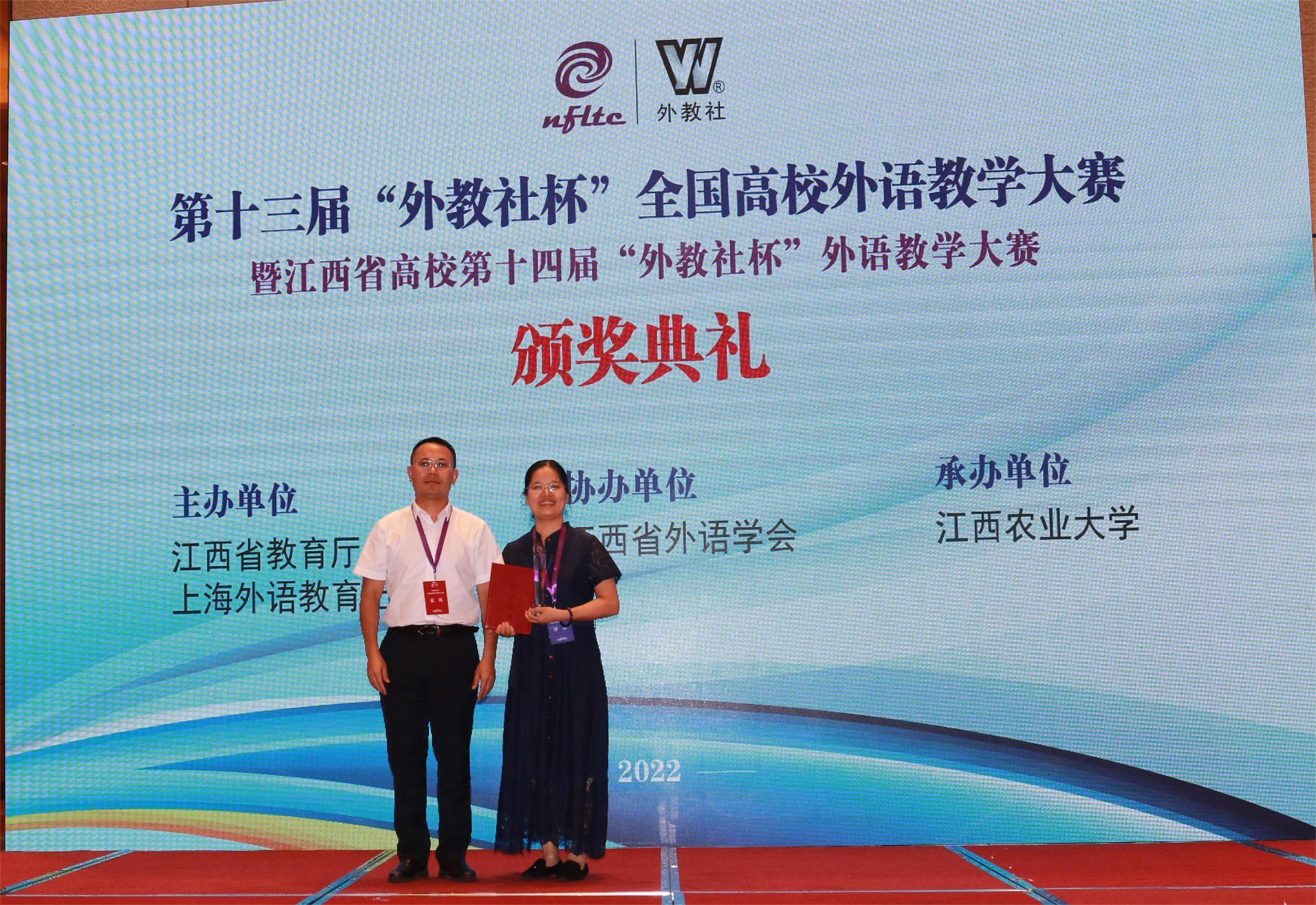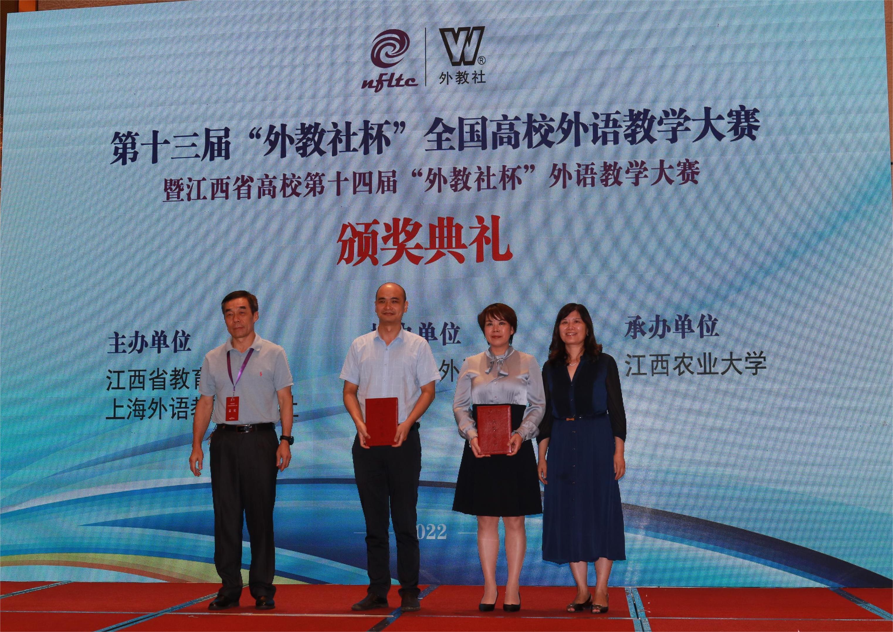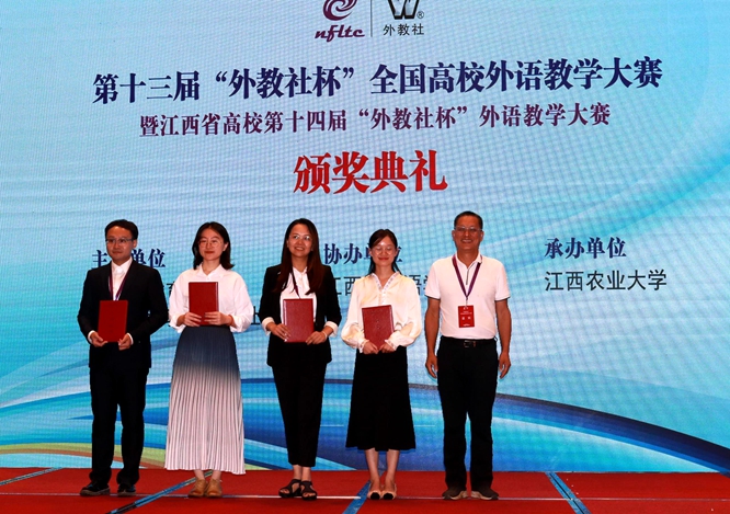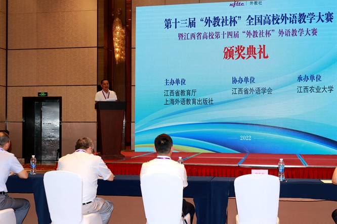 本次大赛由江西省教育厅、上海外语教育出版社主办,江西省外语学会协办,江西农业大学承办。“外教社杯”全国高校外语教学大赛始创于2010年,现已成为全国规模最大、层次最高、影响最广的高校外语教学竞赛。本次大赛分为“大学英语综合组”“大学英语(视)听说组”“大学日语组”及“微课组”四个组别。全省43个代表队,101位优秀教师,33件微课作品同场竞技角逐,经过复赛(现场教学展示)、决赛(说课、回答问题),共产生52个奖项。