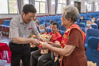 会上,校党委书记黄路生院士、校长赵小敏为老寿星们送上鲜花和祝福,祝愿老寿星们节日快乐、身体健康、阖家幸福。老寿星代表黄洪友作了发言。
