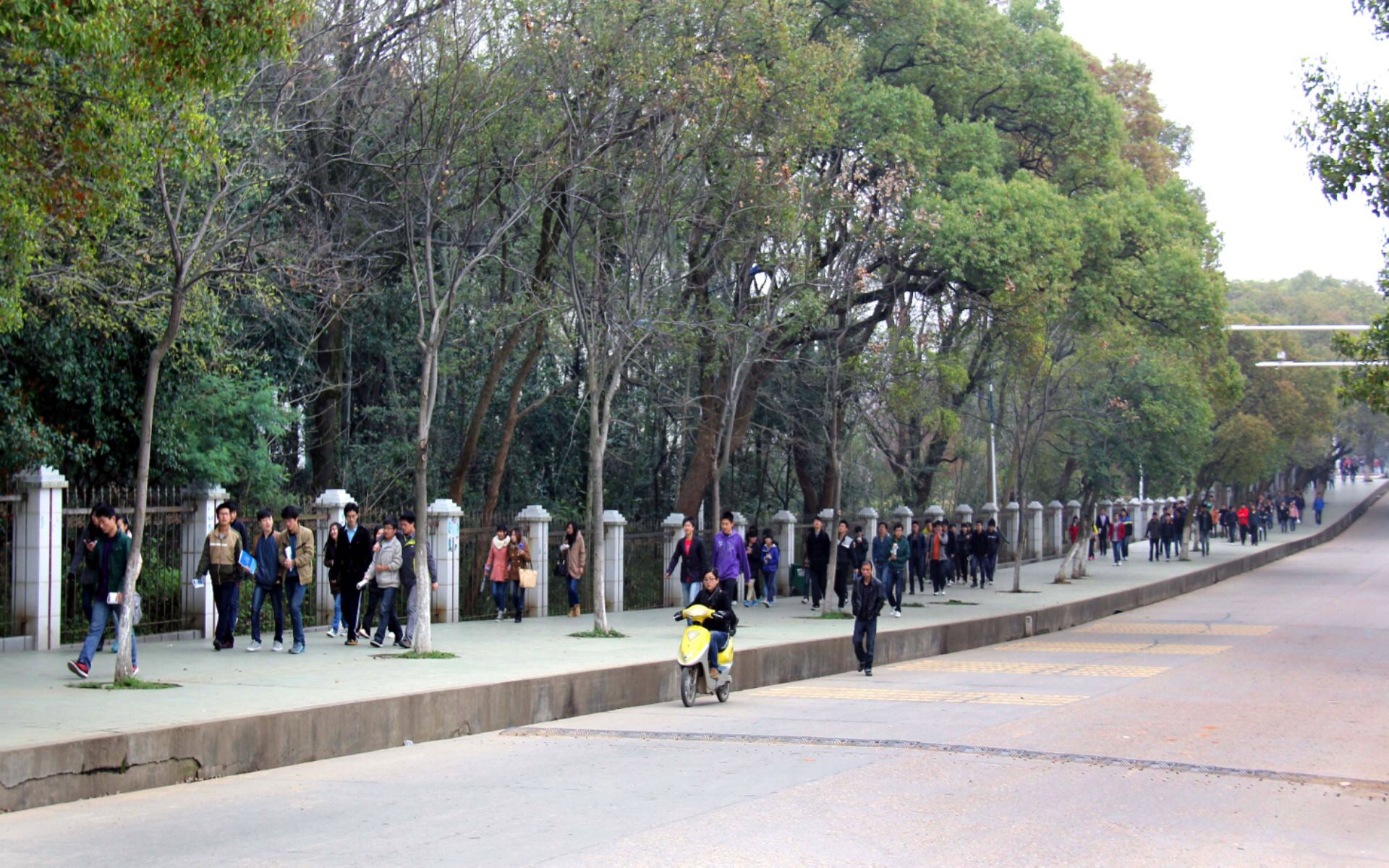 2014年,改造前的志敏大道1号门路段,近2万师生上下课穿行南北校区。(宣传部供图)
