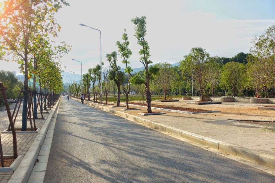 经过4年改造,新志敏大道顺利峻工,全线通车,成为校园中轴线。(李海峰摄)
