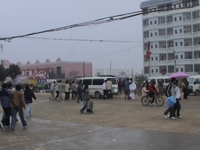 上世纪90年代的志敏大道人车混杂,师生在车流中穿行。(保卫处供图)