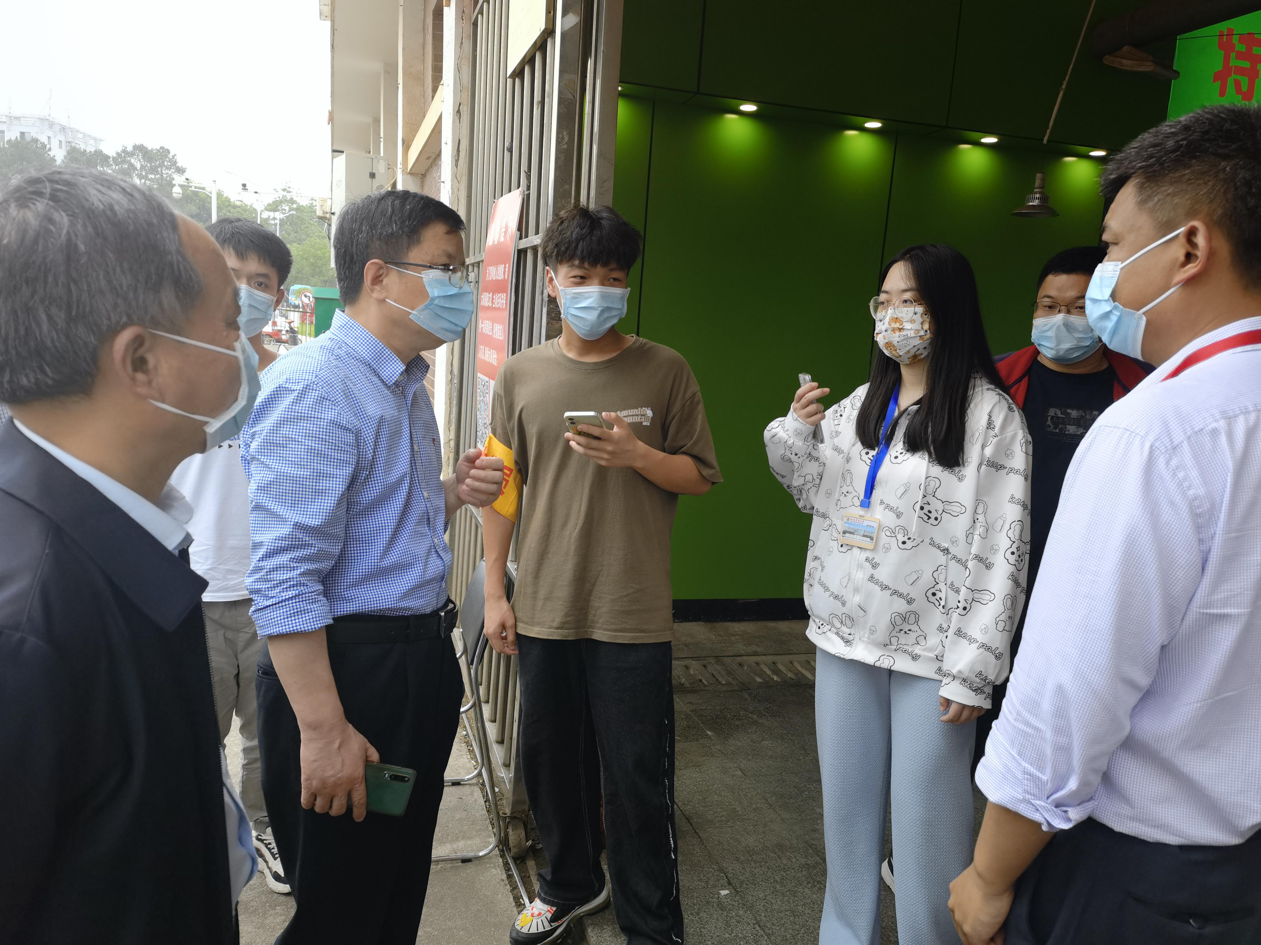 日前,学校根据属地政府疫情防控办、委厅疫情防控各项要求,积极调整防控措施,力保生活服务中心复工复产,满足师生对多元化的消费需求。5月23日,学校开放内外环通道,学生通过网上预约等购物方式,有序错峰到生活服务中心等外环购物消费。开放当日,校长赵小敏,副校长曾志将、林小凡,纪委书记乔金霞在学工处、研工部、后勤服务集团等单位主要负责人陪同下亲临现场指导。