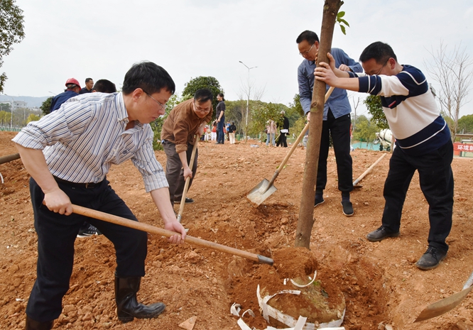 阳春三月,生机盎然,3月12日,在第44个植树节来临之际,校领导黄路生、赵小敏、蔡海生、贺浩华、黄英金、曾志将、林小凡、刘木华、张高亮,与相关部门负责人、师生代表一起,来到板栗园参加义务植树活动。