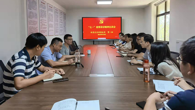 “共大精神是在贯彻毛泽东教育思想、探索社会主义教育发展道路、解决办学实际困难和矛盾的过程中孕育生成的。”校党委宣传部长贺一松结合七一精神学习宣讲,和师生们分享了共大精神的学习体会。为了推动共大精神成为传承红色文化、夯实立德树人根基的力量源泉,学校成立共大精神研究团队,围绕着共大精神的生成背景、基本内涵、时代价值进行深入研究和讨论,形成了初步研究成果。研究团队的专家们,还走进各基层党组织、师生群体中,宣讲交流共大精神的学习体会。