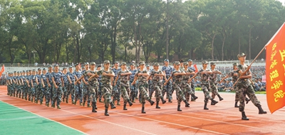 庄严的升国旗仪式后,各学院连队进行分列式军训汇报展演,2020级学生们飒爽的军姿、整齐的队列、饱满的精神展示军训成果,赢得了师生的阵阵喝彩。