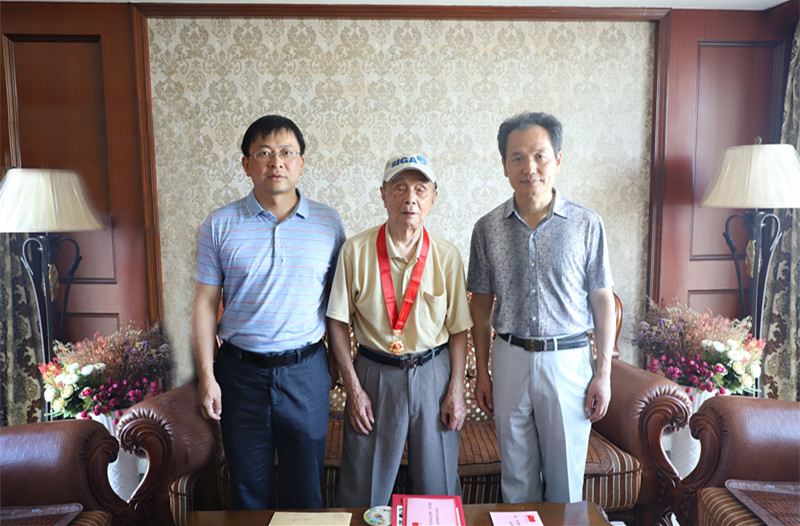 在杨老家中,许斌华转达了校党委书记黄路生院士、校长赵小敏教授对杨老的诚挚祝福,代表学校向他表示衷心祝贺,对杨老为学校建设发展作出的贡献表示衷心感谢。同时,许斌华为杨老送上贺信、鲜花和慰问金,为杨老佩戴了“光荣在党50年”纪念章。杨老身体健康、思维清晰,他激动地连声感谢学校长期以来的关心关爱!许斌华详细询问了杨老的身体状况和日常起居,听说杨老至今依然每天坚持看报、收看新闻联播、关心国家大事,一如既往地关注学校建设与发展,感到十分欣慰和倍受鼓舞。