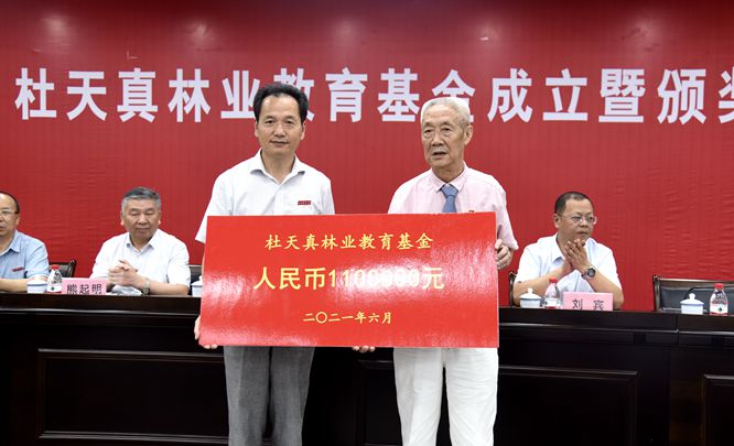 6月19日,一场庄重而温暖的捐资助学仪式在学校行政楼报告厅举行。已届82岁高龄的原副校长、林学家、林业教育家杜天真教授个人捐资110万元,设立“杜天真林业教育基金”,用于奖励江西农业大学林学院和江西环境工程职业学院林业类专业师生,以激励师生们投身林业事业。