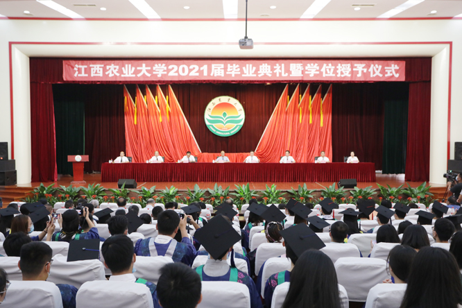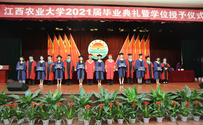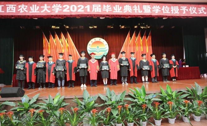 校长、博士生导师赵小敏致辞,向圆满完成学业的2021届毕业生表示热烈的祝贺,向为同学们顺利完成学业付出辛勤汗水、给予巨大支持的教职员工、亲朋好友,表示衷心的感谢!赵小敏寄语毕业生们,立大志、明大德、成大才、担大任,为中华民族伟大复兴和建设中国特色社会主义现代化强国不懈奋斗。赵小敏对同学们提出四点希望:一是知史爱党、知史爱国,始终保持对伟大祖国、伟大民族、伟大人民的深厚感情,厚植爱党、爱国、爱社会主义的大情怀,矢志为祖国、为人民拼搏奋斗;二是崇德向善、立德修身,始终做社会主义核心价值观的践行者、传播者,不断增强意志力、坚忍力、自制力,积极追求有高度、有境界、有品味的人生;三是脚踏实地、实干笃行,始终保持勤于实践、笃实好学的作风,牢记“团结、勤奋、求实、创新”的江农校训,在孜孜不倦的实干力行中成就一番事业;四是刻苦钻研、勇于创新,始终保持敢为人先、革故鼎新的锐气,立足现代农业科技前沿,在工作中敢于突破、勇于创新,努力为乡村全面振兴和建设现代农业强国贡献青春力量。