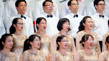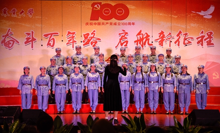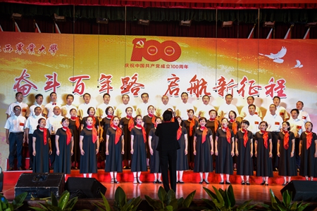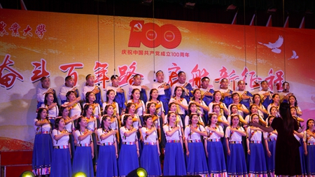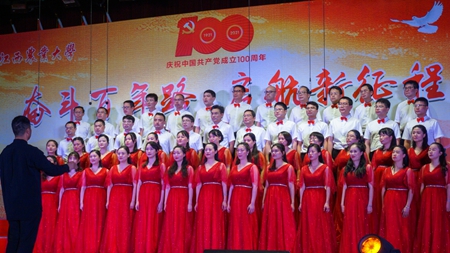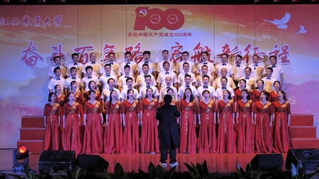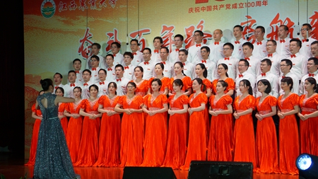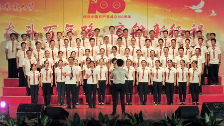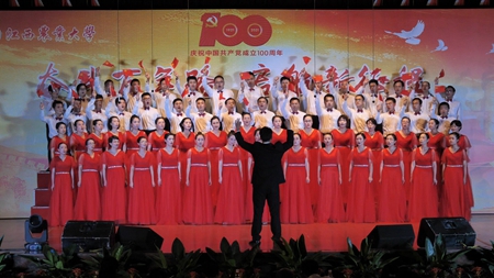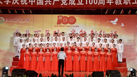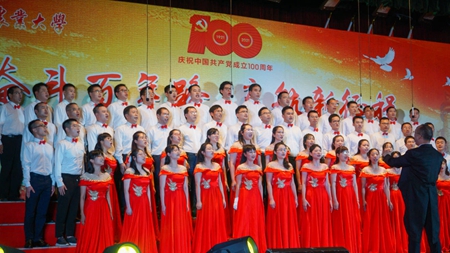 6月22日晚,在中国共产党成立100周年即将来临之际,学校举行了庆祝建党100周年“奋斗百年路 启航新征程”教职工合唱比赛,全校24支队伍上台演出,其中参赛队伍共19个,他们用动听的歌声、真挚的感情歌颂对党和祖国的热爱。