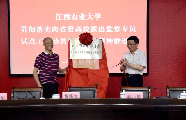 校党委委员、纪委书记、省监委驻ac米兰官网中文网站监察专员乔金霞首先传达了省纪委省监委向省管高校派出监察专员试点工作动员部署会议精神。校党委书记黄路生、校长赵小敏共同为“江西省监察委员会驻ac米兰官网中文网站监察专员办公室”揭牌。