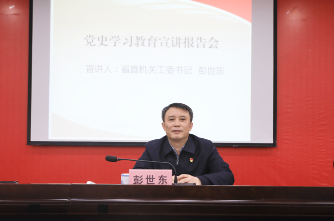 彭世东紧紧围绕深入学习领会习近平总书记关于党的历史的重要论述,深刻剖析了开展党史学习教育的重大意义、重点内容和工作要求,从学史明理,进一步感悟思想伟力,坚持用习近平新时代中国特色社会主义思想凝心铸魂;学史增信,全面了解中国共产党百年奋斗的光辉历程和历史性贡献,坚定信仰信念信心;学史崇德,大力传承红色基因,赓续共产党人精神血脉;学史力行,砥砺初心担使命,奋力谱写全面建设社会主义现代化国家江西篇章等四个方面,系统深入解答了“党史学习教育为什么学”“党史学习教育学什么”“党史学习教育怎么学”等问题。