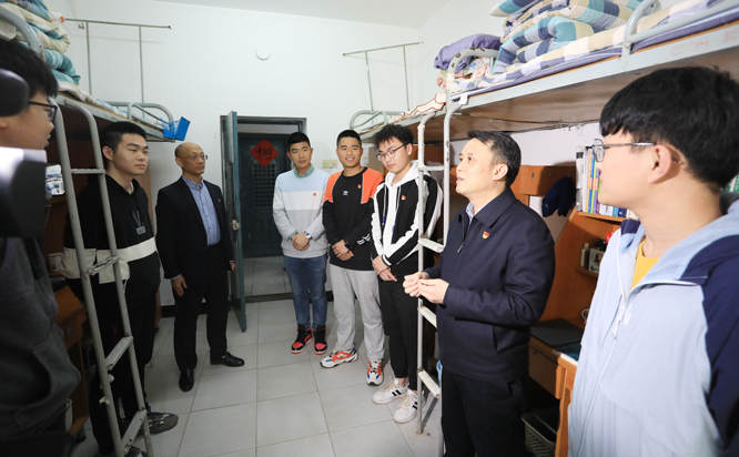 宣讲结束后,彭世东走进学生宿舍,与同学们进行了深入交流。彭世东勉励大家听党话、跟党走,积极传承红色基因、赓续共产党人精神血脉,努力成为担当民族复兴大任的时代新人。