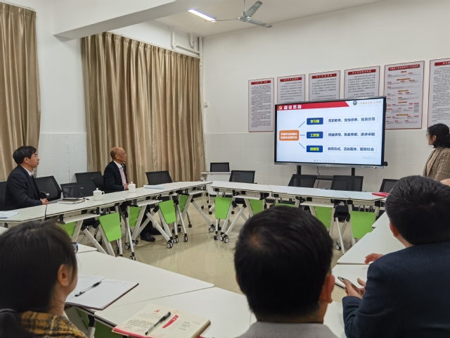 在工学院,黄路生听取了学院教工第四党支部党建“三化”建设工作汇报。他指出,党支部是党的基础组织,是党的组织体系的基本单元,要全力打通为民服务“最后一公里”,让党组织和党员的凝聚力、战斗力成为推动学院高质量发展的尖刀力量。他强调,要不断强化党支部政治功能,充分发挥党支部战斗堡垒作用和党员先锋模范作用,进一步对标上级要求,凝练自身特色,坚持一切从实际出发,将“党建+”与育人特色、科研创新、学科建设深度融合,推进学院基层党建工作形象化、具体化、特色化。