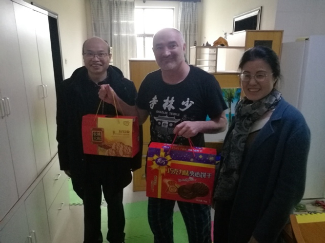 校领导还专程看望了留校外籍教师,同他们进行了亲切的交流,了解工作、生活情况和实际需求,感谢他们在各自岗位所做出的贡献和努力,祝愿他们在学校度过一个愉快的春节假期。外籍教师纷纷表示在学校度过假期感觉平安而又愉快,感谢学校的关心。