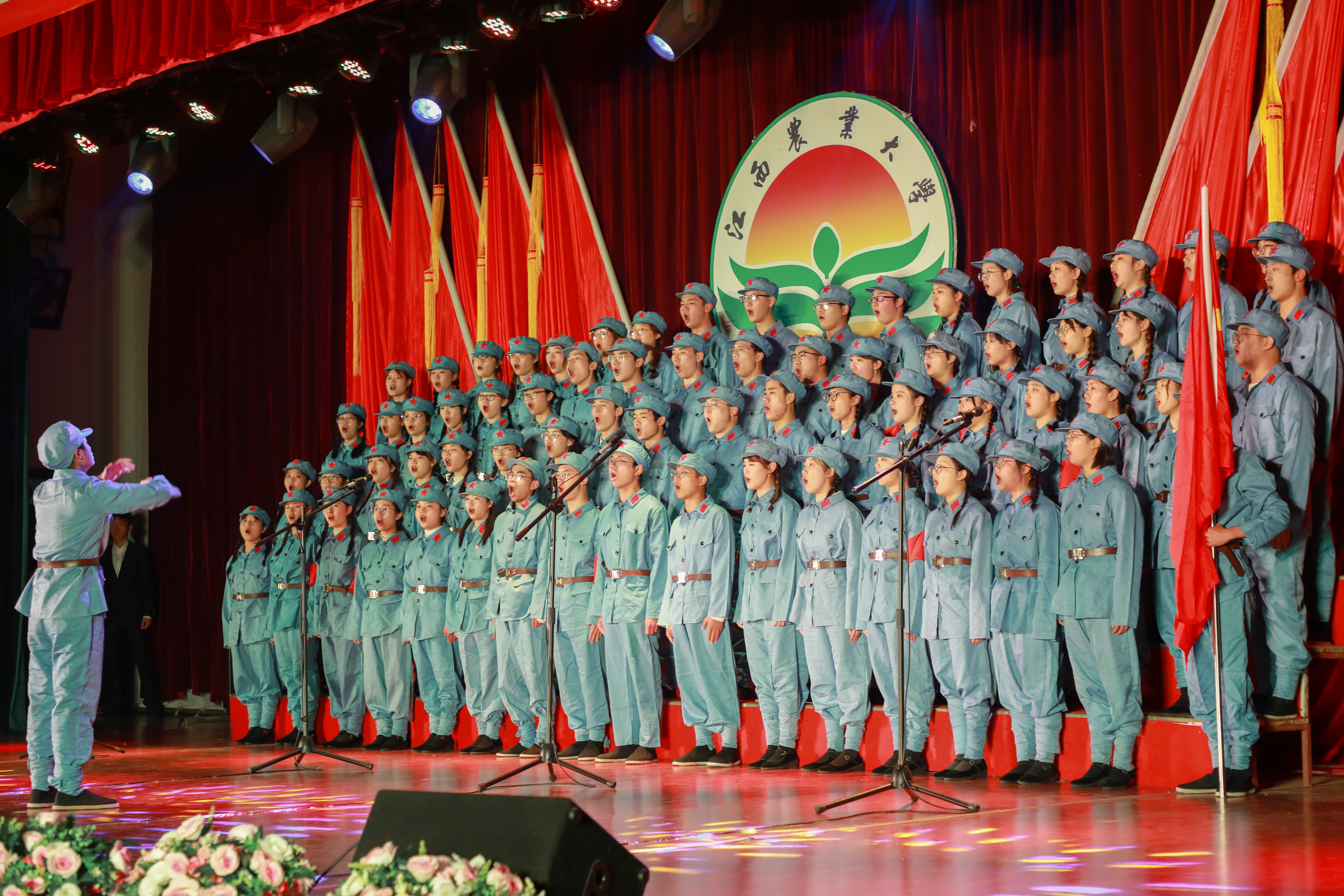 “每一颗子弹消灭一个敌人,我们都是飞行军……”身着红军军装的80人合唱团走进中心舞台,由职师院一曲《游击队歌》带着大家沉浸到了那段奋斗史。