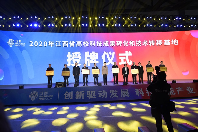 副校长黄英金代表学校接受首批江西省高校科技成果转化和技术转移基地授牌