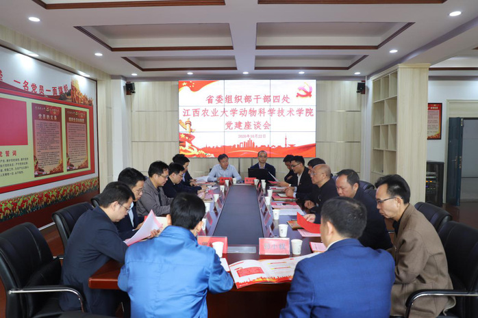 10月22日,省委组织部干部四处处长梁文懋一行6人来学校党建联系点动科院调研党建工作并开展主题党日活动,校党委书记黄路生院士会见了梁文懋一行并主持召开座谈会。干部四处党支部全体党员,学校党办校办、组织部负责人和动科院领导班子成员、各支部书记参加座谈会。