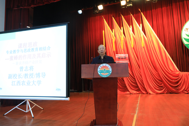 “2009年11月,时任国家副主席习近平批示:蜜蜂授粉的‘月下老人’作用,对农业的生态、增产效果似应刮目相看。”“蜜蜂的作用,包括满足人民美好生活需要、促进农业绿色发展、保护生态环境、助力脱贫攻坚。”10月20日下午,ac米兰习近平新时代中国特色社会主义思想专题课第二讲开讲。副校长、中国养蜂学会副理事长曾志将教授,以《蜜蜂的作用及其启示——兼谈养蜂产业扶贫》为题,将结合自己多年从事蜜蜂研究、产业扶贫的经历,和同学们分享学习习近平新时代中国特色社会主义思想的心得体会。
