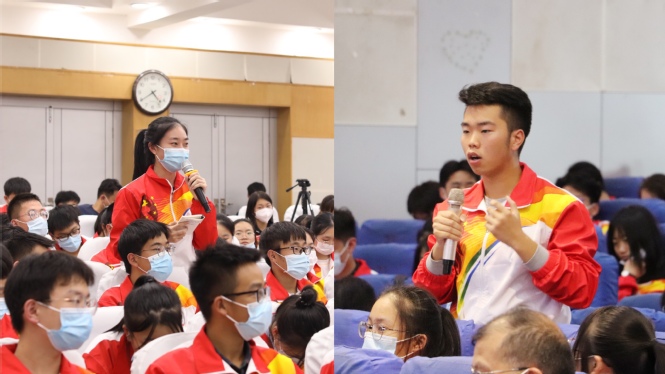 “您觉得大学生需要具体哪些方面的素质”、“作为新时代大学生,需要从哪些方面培养社会适应能力”…… 2020级新生积极举手、踊跃提问,与校长进行交流互动。