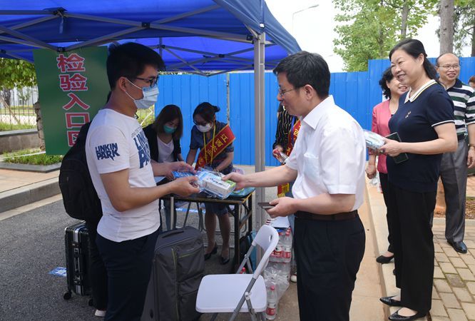 校领导黄路生、赵小敏、胡春晓、贺浩华、许斌华、邱晓辉、曾志将、林小凡、刘木华、乔金霞到学校卡点检测处和火车站西站,看望返校学生,校领导询问同学们从哪里、乘坐什么交通工具回来,要求大家严格遵守疫情期间校园的规章制度,叮嘱大家安排好疫情防控期间校园生活学习。校领导还为返校学生发放“健康礼包”。
