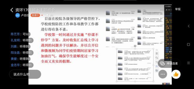 “云班会”的广泛开展在全校师生当中引起了强烈反响。理学院应化1903班班主任彭玉萌老师认为:“新冠肺炎疫情防控就是一堂鲜活的思政课,通过云班会,就是要把这堂思政课讲到每个同学的心坎里,让同学们在重大公共卫生安全事件中淬炼成长,即传递战“疫”必胜和实现中华民族伟大复兴的信心,又激扬同学们的爱国热情,点燃报国雄心。”