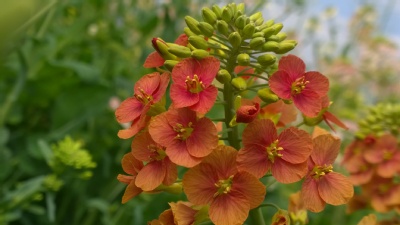 彩色油菜花是付东辉团队多年的科研结晶。在由四川省什邡市李孝楠老师提供了花粉的基础上,付东辉采用将花粉与优良材料杂交、回交和然后自交等多种选育方法,使不同花色基因重新组合,促使油菜花的花色的种类不断更新。“今年的彩色油菜花种类达到38种,比去年又新增11种,而稳定花色数达到22种,整体花色更加鲜艳靓丽。”付东辉欣喜地告诉记者。