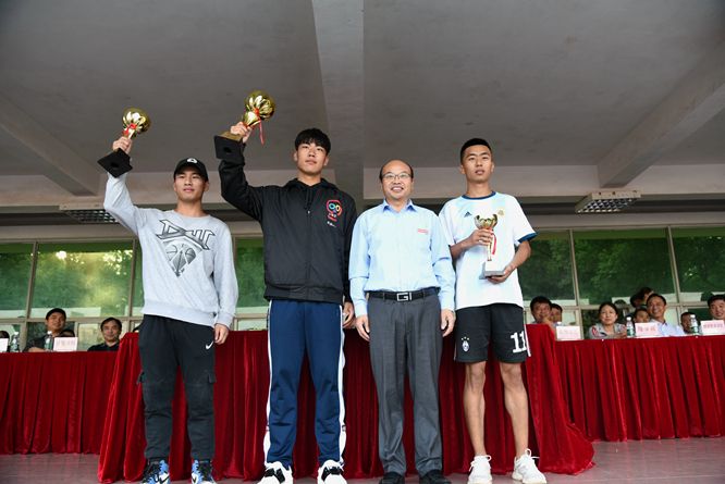 第45届田径运动会总裁判长范海英宣布本次运动会比赛成绩,工学院、经管院、动科院分获学生男女团体总分前三名;工学院、软件院、经管院荣获学生男子团体总分前三名;动科院、经管院、国土院获得学生女子团体总分前三名;园林院、后勤集团、国土院分别获得教职工团体总分前三名;外语院、人文院、食品院、职师院、动科院获得大学生体育道德风尚奖。