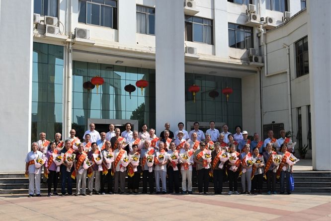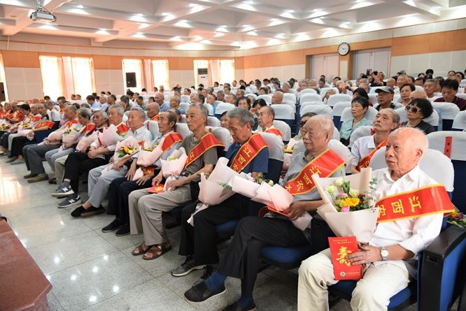 会后,全体在校领导,各单位主管离退休工作负责人和老寿星们一起合影留念。