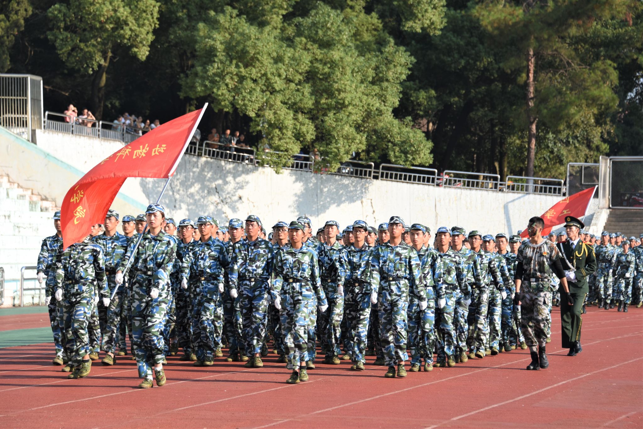 14天挥洒汗水,今朝沙朝点兵。9月30日上午,2019级新生军训汇报展演在运动场举行。2019级全体参训新生组成14个方队,脚步铿锵,军姿飒爽,喊着响亮的口号,带着自信的笑容,以饱满的精神状态接受检阅。
