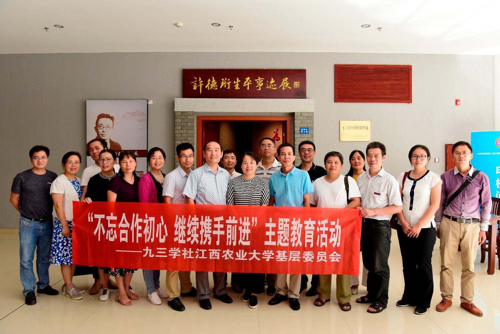 在坐落于九江职业大学的许德珩事迹展示厅,全体社员参观了九三学社创始人许德珩生平事迹展,仔细聆听了许德珩的事迹介绍,认真观看了文献图像与实物展览,进一步了解了九三学社的发展历史。