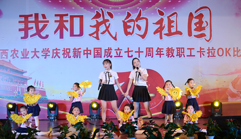 《我的中国心》、《红旗飘飘》、《不忘初心》、《一荤一素》……一首首脍炙人口、催人奋进的歌曲抒发了农大教职工对党、对祖国、对学校的深爱之情,展示了奋发向上的精神风貌。“少年强则国强”,由附中分工会邹航、余骏、夏威怡、冷竹青和附中同学们合作的《我和2035有个约》,歌曲节奏欢快,给观众带向了对2035年全面建成小康社会的美好憧憬中,用青春告白祖国。机关二分工会陈家兴带来的《等待》,歌曲气势磅礴,歌声或高亢或低回婉转。孩子是祖国发展,一曲由保育院分工会熊梅玲、卢梦和保育院的小朋友合作的《最好的未来》,“幸福永远与爱同在,每个梦想,都值得灌溉”,动听的旋律、温馨的歌词祝愿每个小朋友都能有最好的未来。