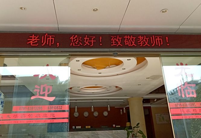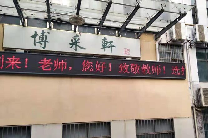 为热烈庆祝第35个教师节,倡导尊师重教,引导全校师生感谢恩师、礼敬教师,营造祥和、浓厚的节日氛围,学校开展“为教师亮灯”活动。9月10日,后勤服务集团、图书馆、医院、招生就业处、园林与艺术学院、工学院、国土资源与环境学院、计算机与信息工程学院、软件学院、人文与公共管理学院、生物科学与工程学院等单位,充分利用LED屏幕,滚动播放“老师,你好”,“致敬教师!”等标语,为教师亮灯,送上节日的祝福。