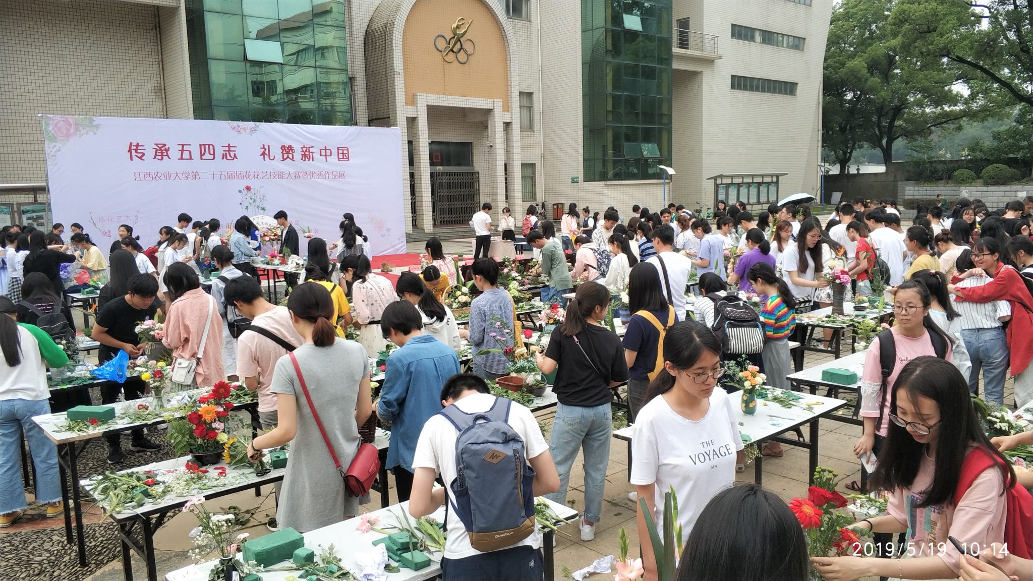 为纪念五四运动100周年、庆祝中华人民共和国成立70周年,进一步繁荣校园文化,5月19日上午,由校团委主办、农学院团委承办、花卉协会协办的“传承五四志·礼赞新中国”大学生主题团日活动暨第二十五届插花花艺技能大赛在北区体育训练馆门前举行。校党委副书记胡春晓来到现场参观指导。来自ac米兰和江西师范大学、江西科技师范大学等部分兄弟高校的260余名选手参赛。