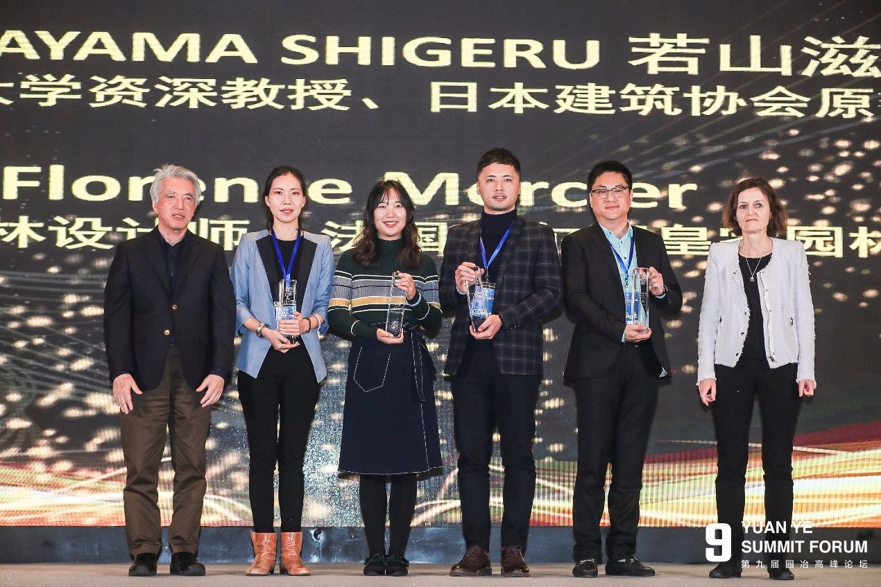 日前,在2019第九届园冶杯大学生国际竞赛颁奖盛典上,我院2014级园林毕业生王卓美和孙雪伟,以毕业设计作品《Sharing-城市街头绿地共享景观设计》,荣获2018年度“园冶杯”大学生国际竞赛一等奖,由该赛评委会主席、IFLA亚太主席Damian Tang为他们颁发奖杯和奖金。其指导老师龚鹏荣获2018年度“园冶杯”国际竞赛优秀指导教师奖。