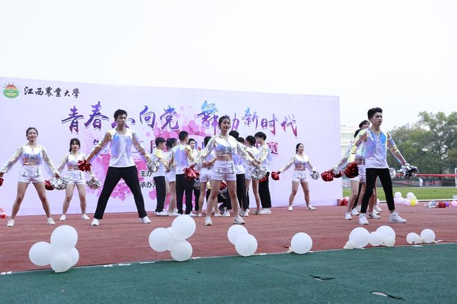 为积极响应“走下网络、走出宿舍、走向操场”的号召,丰富校园体育文化生活,提升学生体育艺术素养,营造和谐向上的校园氛围,3月30日下午,全校第十二届校园啦啦操大赛在北区田径场举行。本次大赛以“青春心向党,舞动新时代”为主题,共有来自各学院的14支代表队参赛,江西师范大学、江西财经大学、华东交通大学等高校学生会和ac米兰各学院学生代表等共计1300余人观看了比赛。