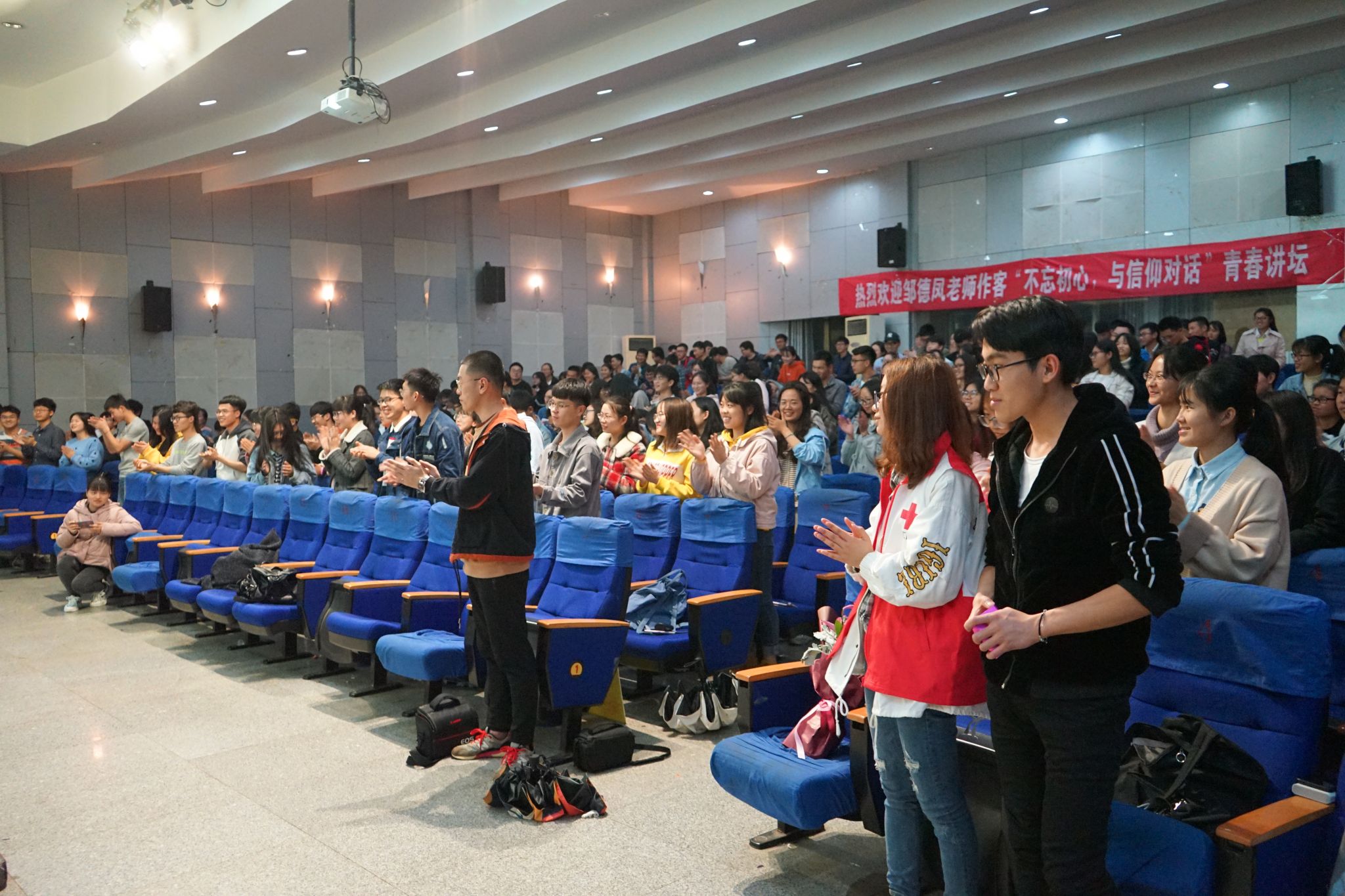报告会上,同学们通过一组短视频了解到了邹德凤老师日常忙碌的志愿工作,也了解到了荣誉背后不为人知的艰辛。随后,邹德凤讲述了自己一步步取得家人和同事的支持,成为大家口中的“超级义工”的历程。报告会还邀请到了邹德凤的同事兼助手曾莉斯以及两位长期跟随邹德凤从事志愿活动的志愿者,她们分享了每到周末跟着邹老师进社区、进养老院、进孤儿院、进病房,向老弱病残们提供各种义务服务中难忘的点滴。邹德凤精神深深地感染了在场的同学们,现场掌声如潮,经久不息。