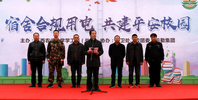 启动仪式上,学工处负责人宣读了消防安全倡议书,学生代表进行宿舍合规用电承诺,经开区消防大队负责人简要说明学校消防安全问题,保卫处负责人详细讲解了消防演练的注意事项。