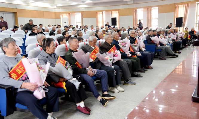 会后,全体在校领导,各单位主管离退休工作负责人和老寿星们一起合影留念。