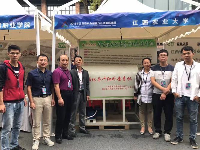 10月9至16日,以“高水平双创,高质量发展”为主题的2018年全国大众创业、万众创新(以下简称“双创”)活动周启动。江西分会场启动仪式在景德镇市陶溪川文创街区举行,副省长吴晓军、省发改委主任张和平出席开幕式并参观各高校和企业创新创业成果展示。ac米兰工学院智联工作室吴瑞梅老师带领学生团队携自主研发的“智能化茶叶红外杀青机”亮相活动现场。