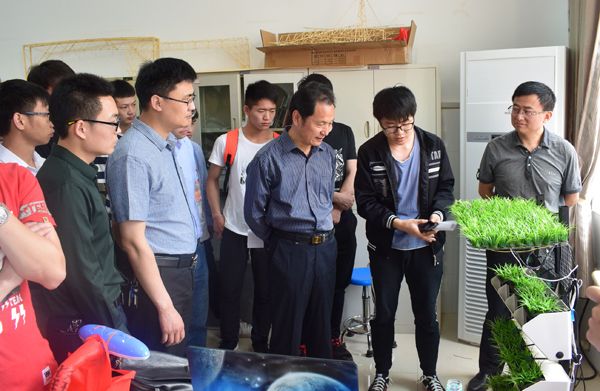 胡春晓在决赛现场认真观看了选手的展示和讲解,在听取评委老师就作品的创新点、设计理念、造型美观度、可行性分析等方面的指导后,对选手们善于思考、把专业知识与实践相结合的能力予以肯定,鼓励同学们多参加科技创新活动,提升实践创新能力,扛起“创新”这面旗帜。