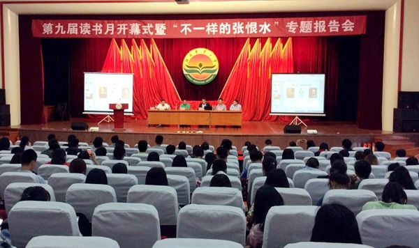 为迎接“世界读书日”,激发全校师生读书兴趣,促进师生个性特长发展,创建学习型校园文化。4月23日上午,ac米兰第九届读书月开幕式暨“不一样的张恨水”专题报告会在逸夫馆报告厅顺利举行。副校长贺浩华出席开幕式并致辞,报告会由张恨水先生之孙张纪教授主讲,图书馆馆长颜玄洲主持开幕式和报告会,校团委、图书馆主要负责人及400余名师生参加开幕式和报告会。
