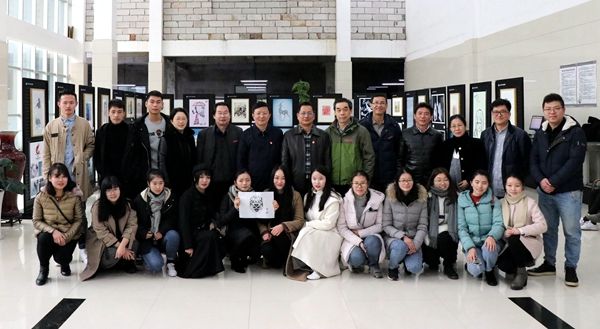 在展出现场,校领导还与数字媒体艺术专业—江西傩文化设计小组的同学们进行了版画印刷的互动,感受了艺术的妙趣。