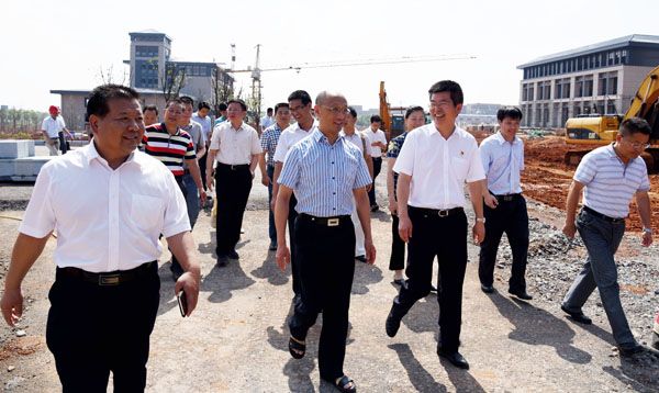 揭牌仪式结束后,校领导一行实地察看了商学院共青城校区的建设情况,并来到新建的教学大楼、学生宿舍、食堂等地,仔细查看施工现场、详细了解工程进展情况。